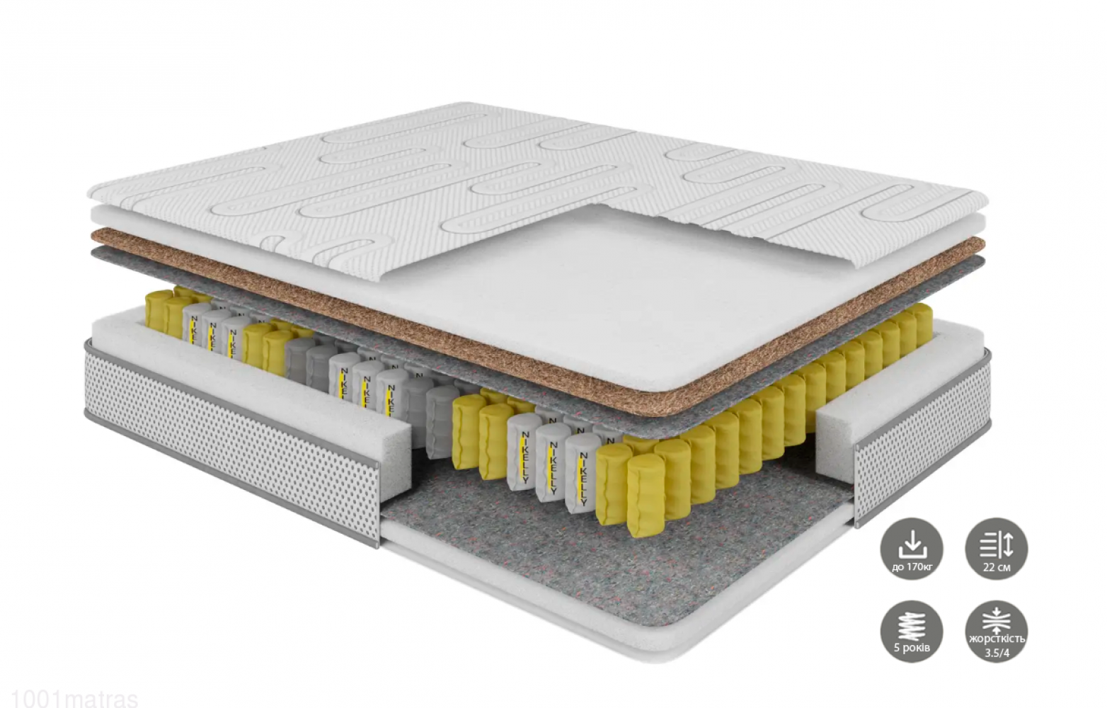 Elastic coconut: Натуральный материал из кокосовых волокон обеспечивает оптимальную жесткость и поддержку, равномерно распределяя вес тела.