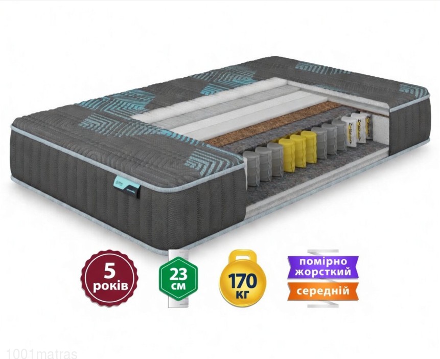 Матрас Citius — это яркий представитель серии Communiter от украинского бренда Nikelly. Эта двусторонняя пружинная модель создана для тех, кто ведет активный образ жизни, ценит надежную ортопедическую поддержку и ищет матрас, способный выдерживать повышенные нагрузки без потери комфорта.